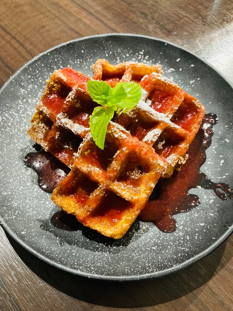 ワッフル フルーツソースかけ